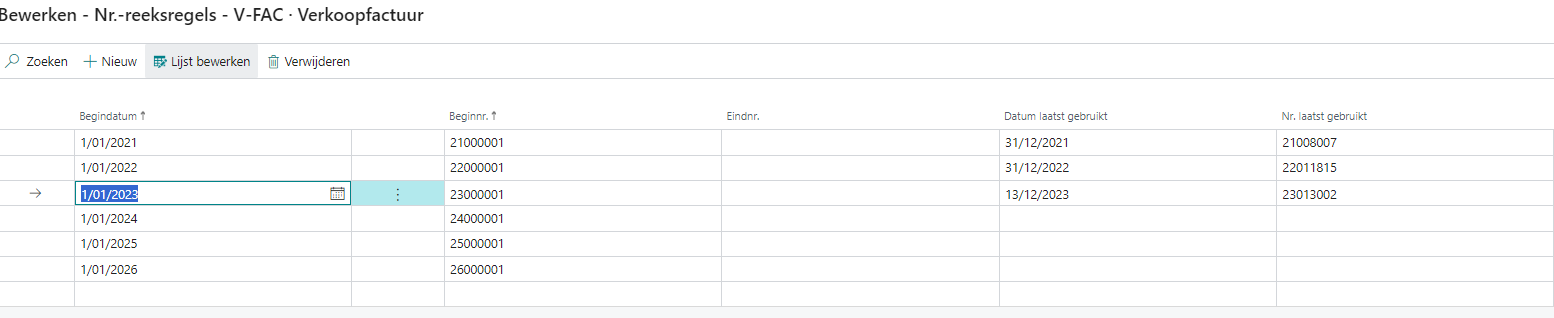 Als je besluit dat de nummering moet aangepast worden bvb. van iets met '23' in naar '24', dan dubbelklik je op de laatste nummer.