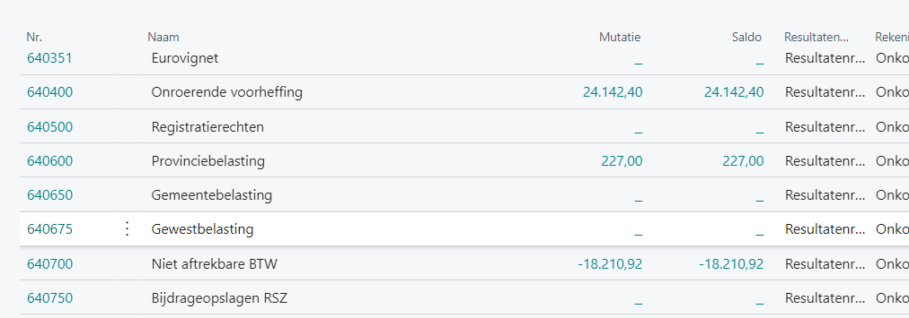 Je krijgt dan de posten te zien die gebeurt zijn op die rekening. Door de filters juist te zetten krijg je alle posten die je wenst, hier bvb. van deze rekening alleen