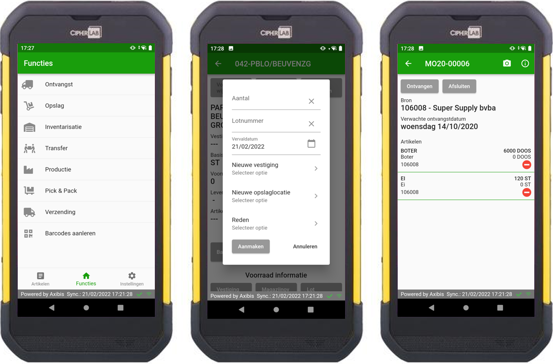 Het op tijd ontvangen en versturen van uw producten is essentieel voor een goed functioneren van uw bedrijf. Daarom kunt u met de Scan Applicatie gemakkelijk uw producten ontvangen dankzij de interne barcode scanner. De slimme controles op te ontvangen loten/serienummers zorgen ervoor dat steeds de correcte producten ontvangen worden. Ook de handige opvolging en invulling van uit te voeren controles bij ontvangst zorgt voor een optimaal ontvangstproces.